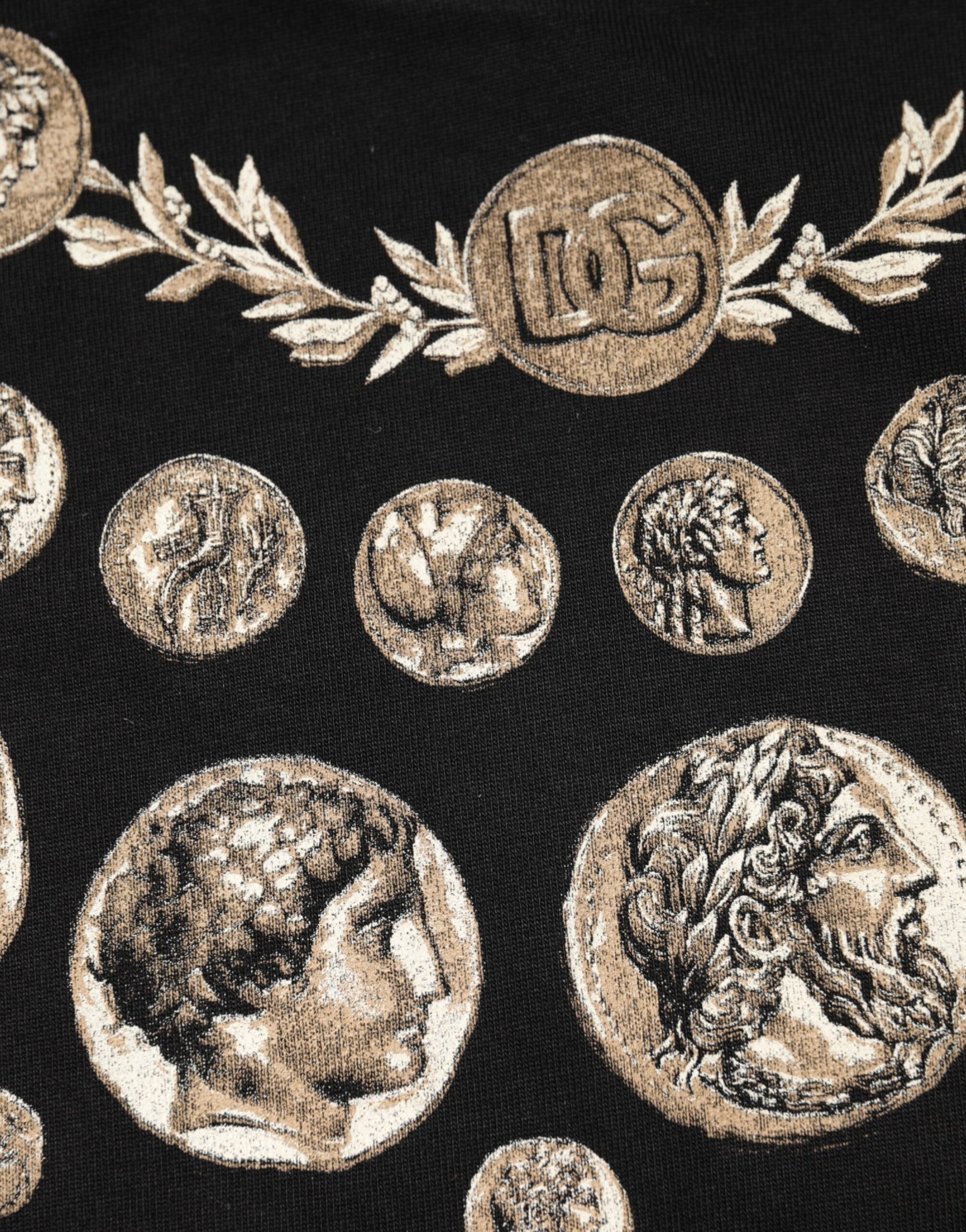 Dolce & Gabbana Black Coin Print Cotton Crew Neck T-shirt