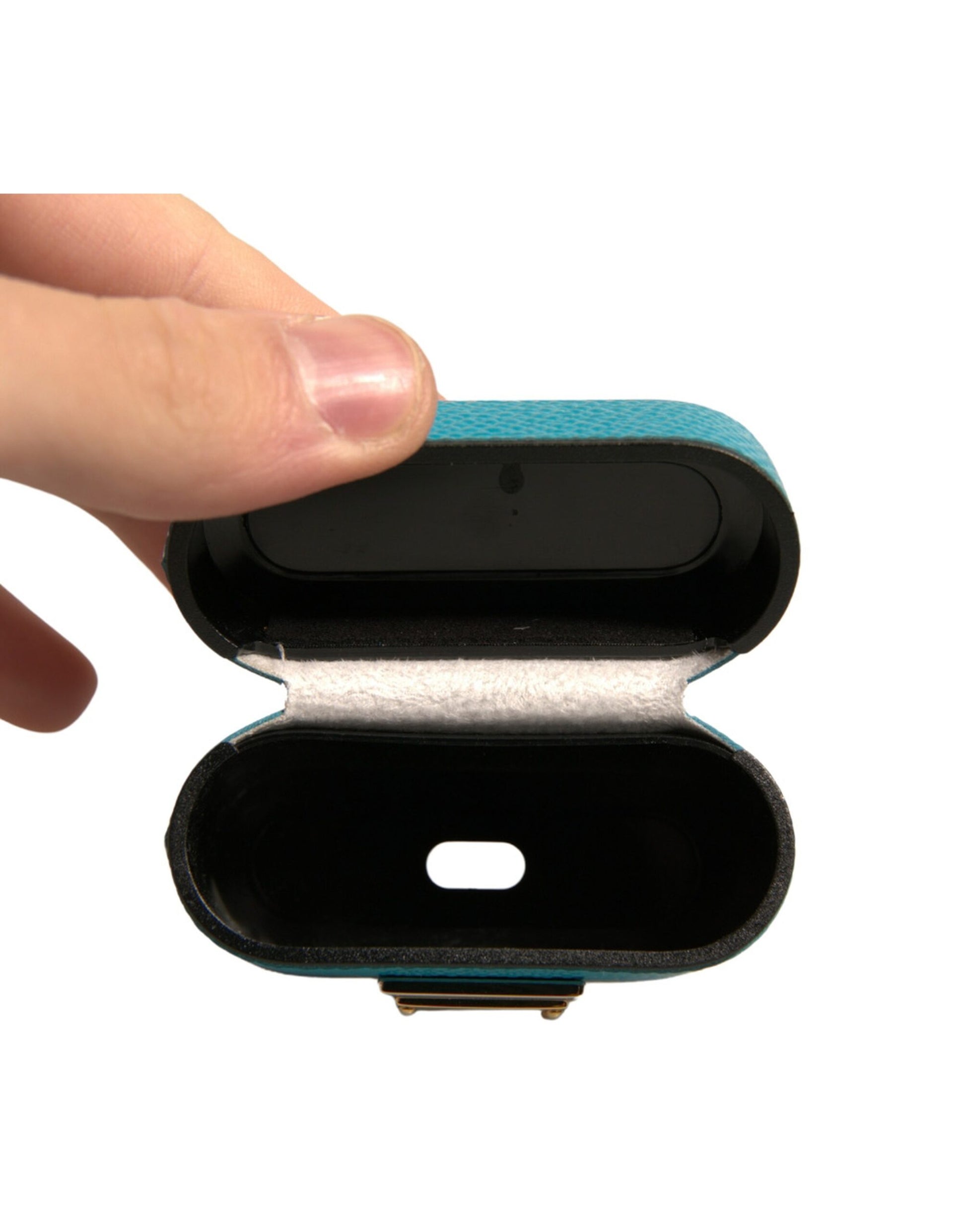 Dolce & Gabbana Green Leather Metal Logo Plaque Holder Airpods Case